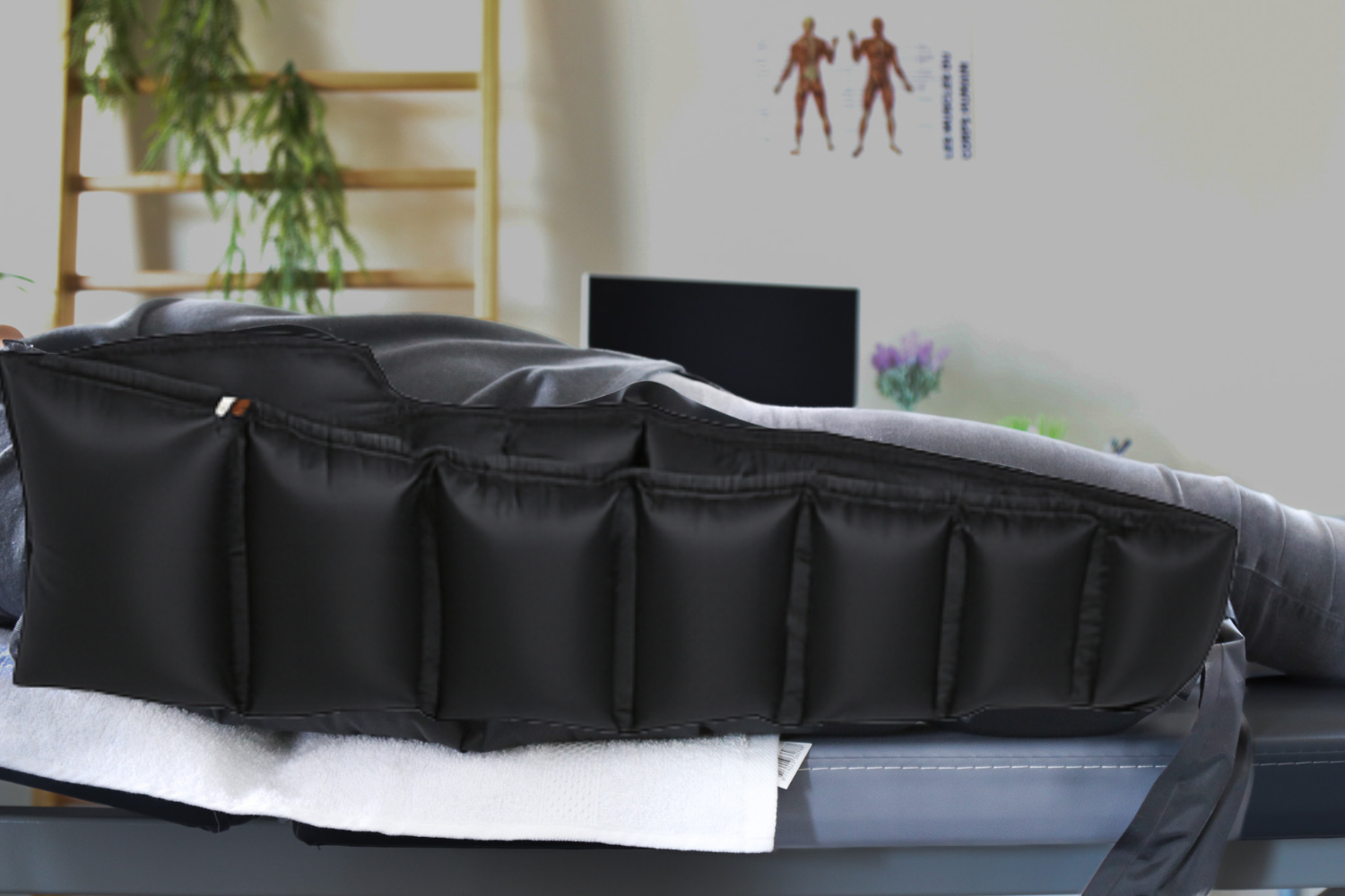 Bottes de pressothérapie - Idéales pour stimuler la circulation sanguine et lymphatique, ces bottes aident à éliminer les toxines, réduire la rétention d’eau et soulager les jambes lourdes. Elles contribuent à diminuer les œdèmes, améliorer la mobilité et accélérer la récupération post-opératoire, tout en réduisant le volume des zones traitées.