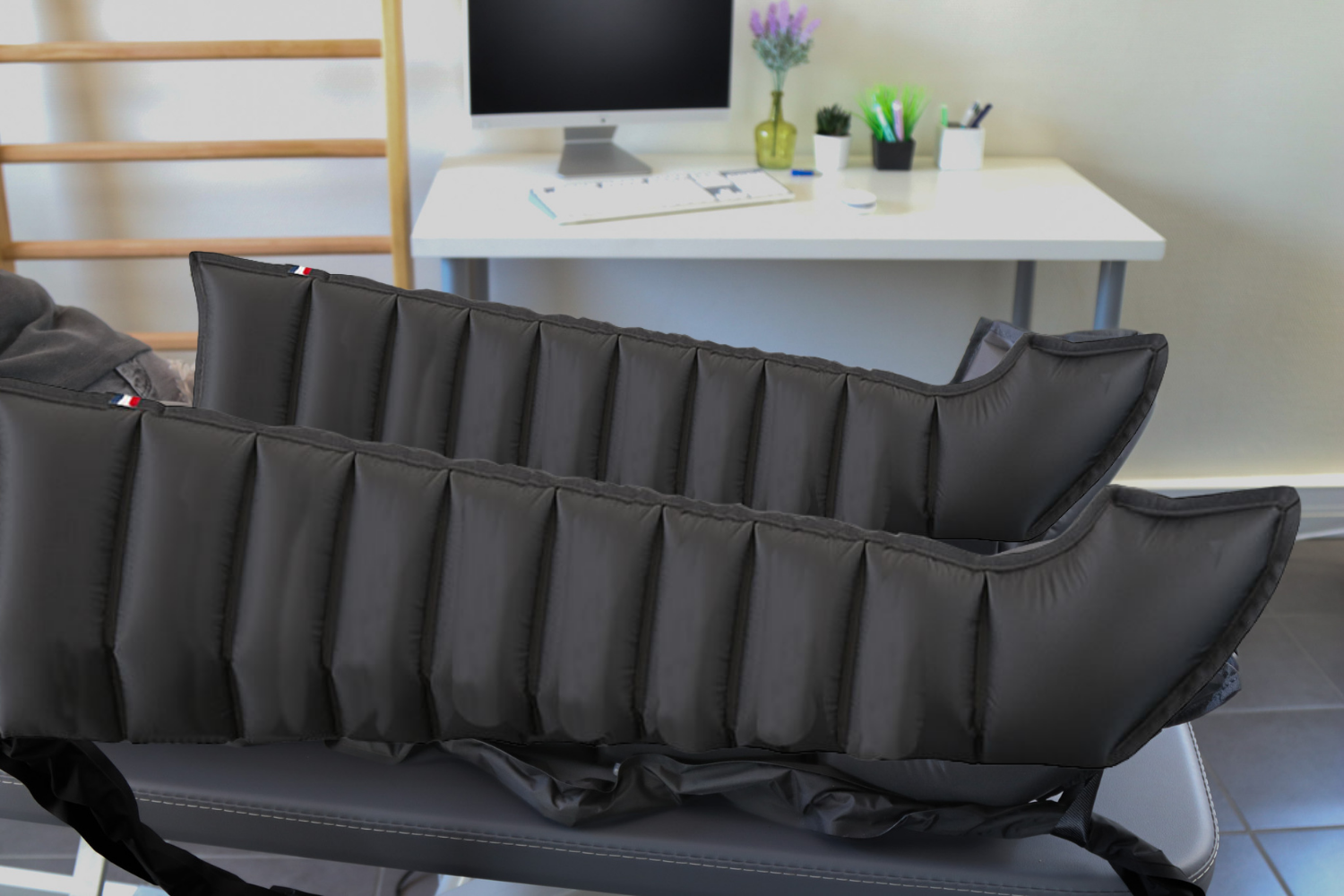 - Membres inférieurs : traitement des jambes et des pieds via des bottes de compression.