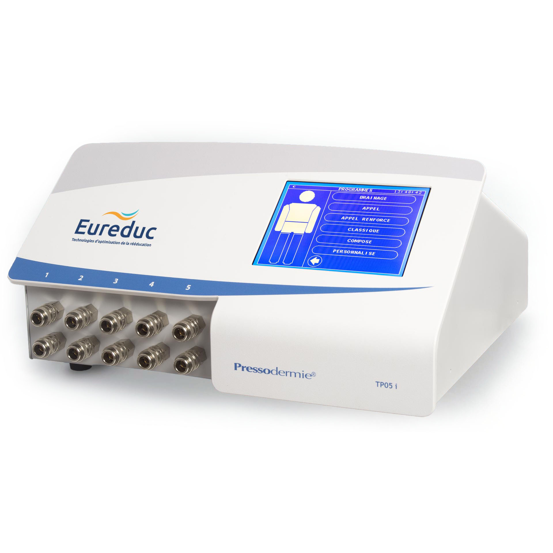 L'appareil de pressothérapie TP05i est un dispositif médical de Pressothérapie à 5 compartiments piloté par écran tactile. qui permet de traiter les troubles veino-lymphatiques sévères. Il est conçu pour dynamiser la circulation veineuse et lymphatique du patient. Son utilisation est facilitée grâce aux protocoles pré-enregistrés.