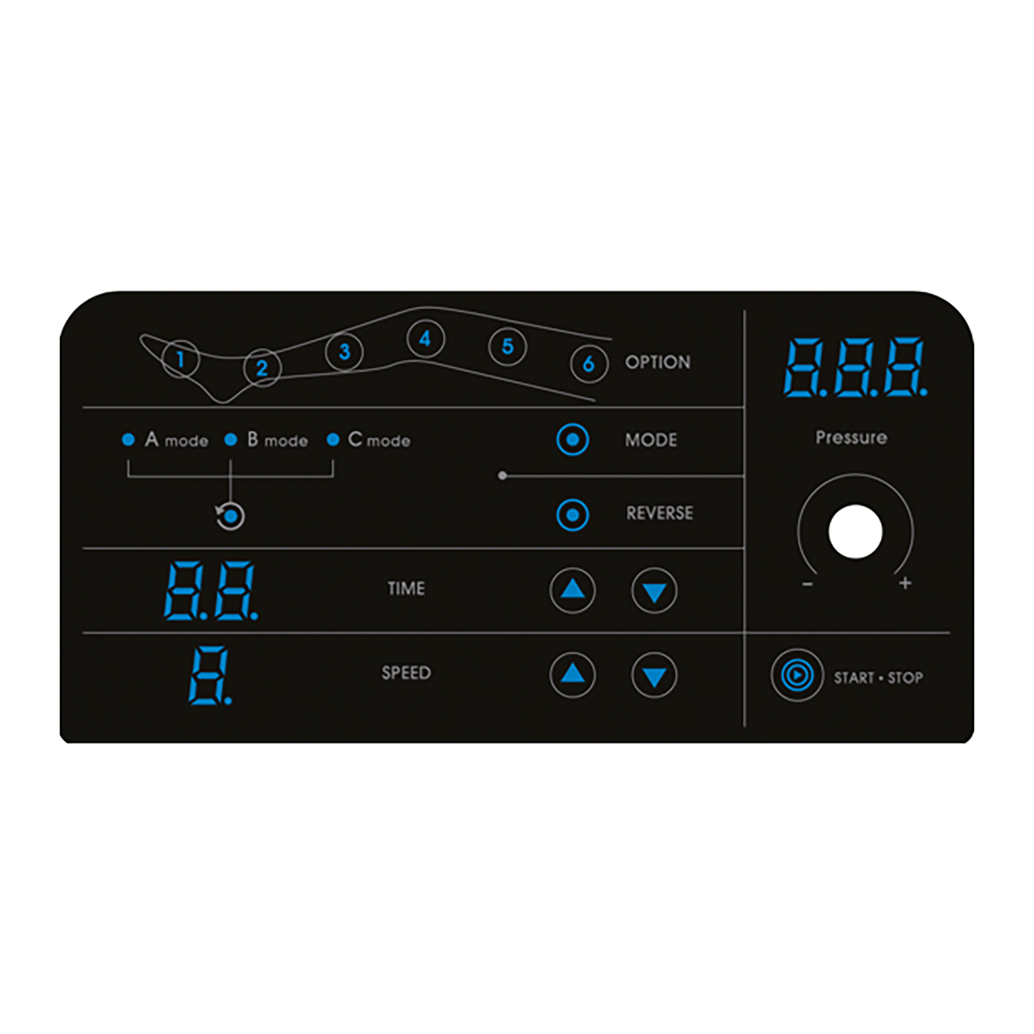 Pour s’adapter à chaque patient et ses symptômes, le MK400 est équipé d’une pression de 10 à 200mm/Hg, de 6 vitesses et d’un temps de traitement de 0 à 99 minutes.