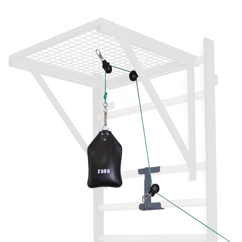Il permet de réaliser des montages de pouliethérapie sans avoir recours à une cage de pouliethérapie, plus chère et encombrante. Elle est livrée avec un filin, un mousqueton et trois poulies.