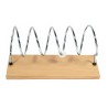 Cette spirale en acier est fixée sur un socle en bois.