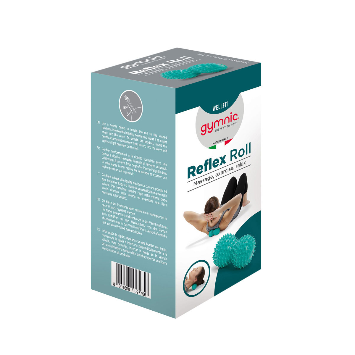 La forme particulière du Reflex Roll découle de l’exigence de satisfaire à la demande d’un outil de massage capable de s’adapter au mieux aux courbes naturelles du corps. Les reliefs sensoriels stimulent la circulation sanguine et le tissu musculaire profond.