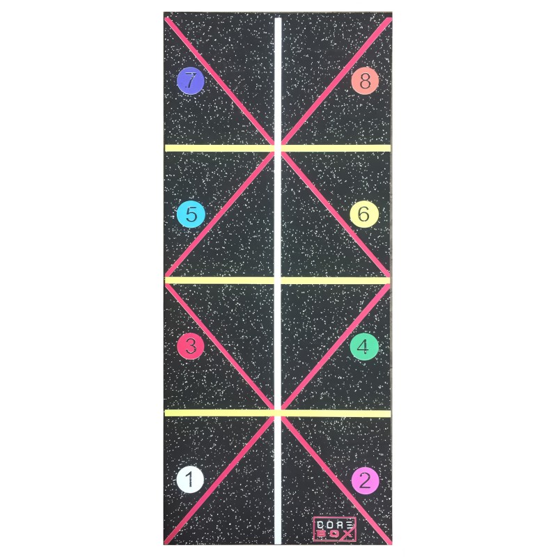 Le tapis d'agilité Core Box est un tapis imprimé sur une face avec des lignes. Il permet de réaliser des entrainements complets du corps comme par exemple de HIIT*. Ce tapis convient pour l'entraînement individuel, mais aussi pour les séances de fitness en groupe.