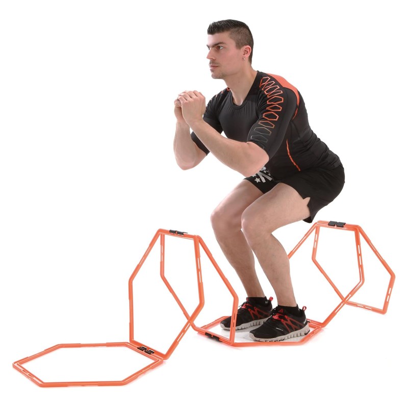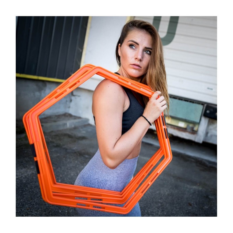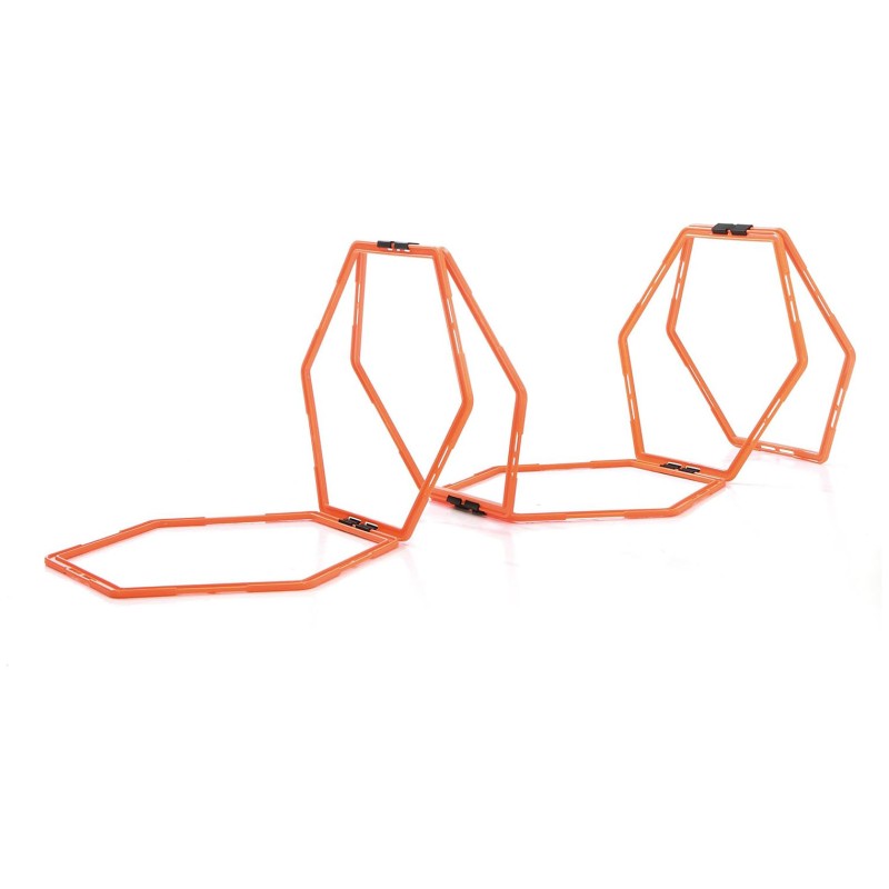 Cette échelle d’agilité modulable comporte 6 zones hexagonales, modulables partiellement ou en totalité sur simple clic pour créer différents modèles d’entrainement. Cette échelle est également disponible en mode haies, ce qui augmente les possibilités d’exercices.