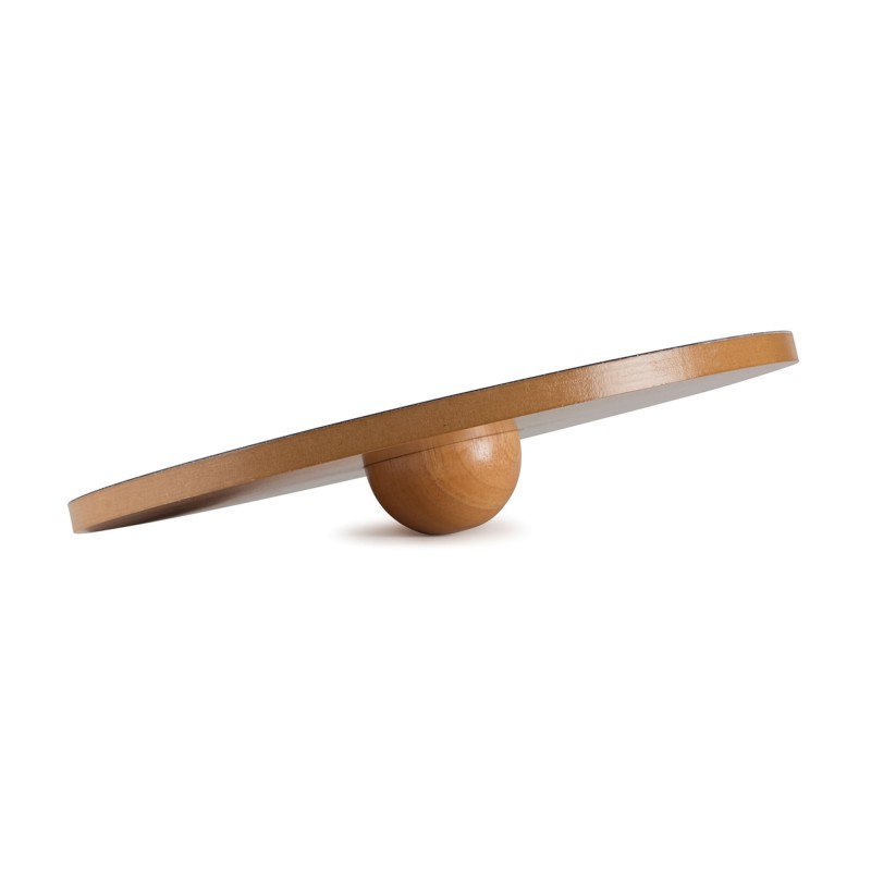 Le Plateau oscille en suivant tous les axes, sur une demi-sphère centrale en bois, de 8 cm de diamètre. Le plateau vernis est recouvert d'un revêtement antidérapant. Le Plateau d'équilibre en Bois se lave à sec et se désinfecte facilement.