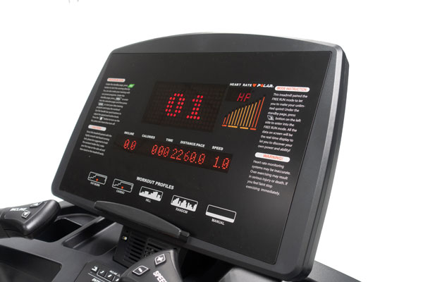 Le tapis de course Sled Run BH Fitness est équipé d'une console avec écran DOT MATRIX. Il dispose d'une fenêtre LED supérieure, qui affiche graphiquement l'évolution de l'exercice. L'écran inférieur donne des indications à l'utilisateur avant et pendant l'exercice.