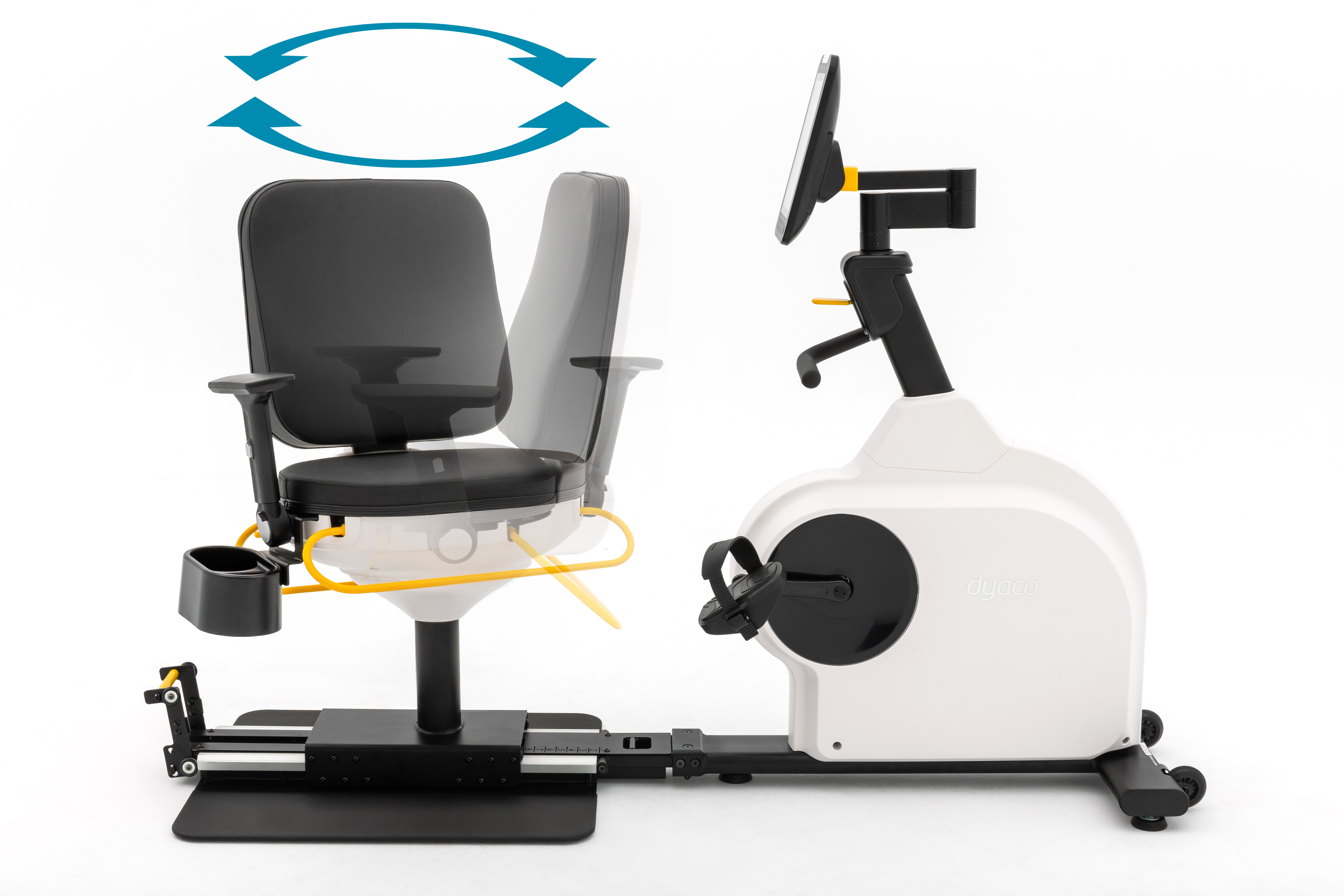 Le siège ajustable à 360° offre une grande liberté de mouvement et permet un positionnement précis, garantissant une posture confortable et efficace. Amovible, il facilite l’installation des personnes à mobilité réduite et rend l’appareil plus polyvalent en rééducation.
