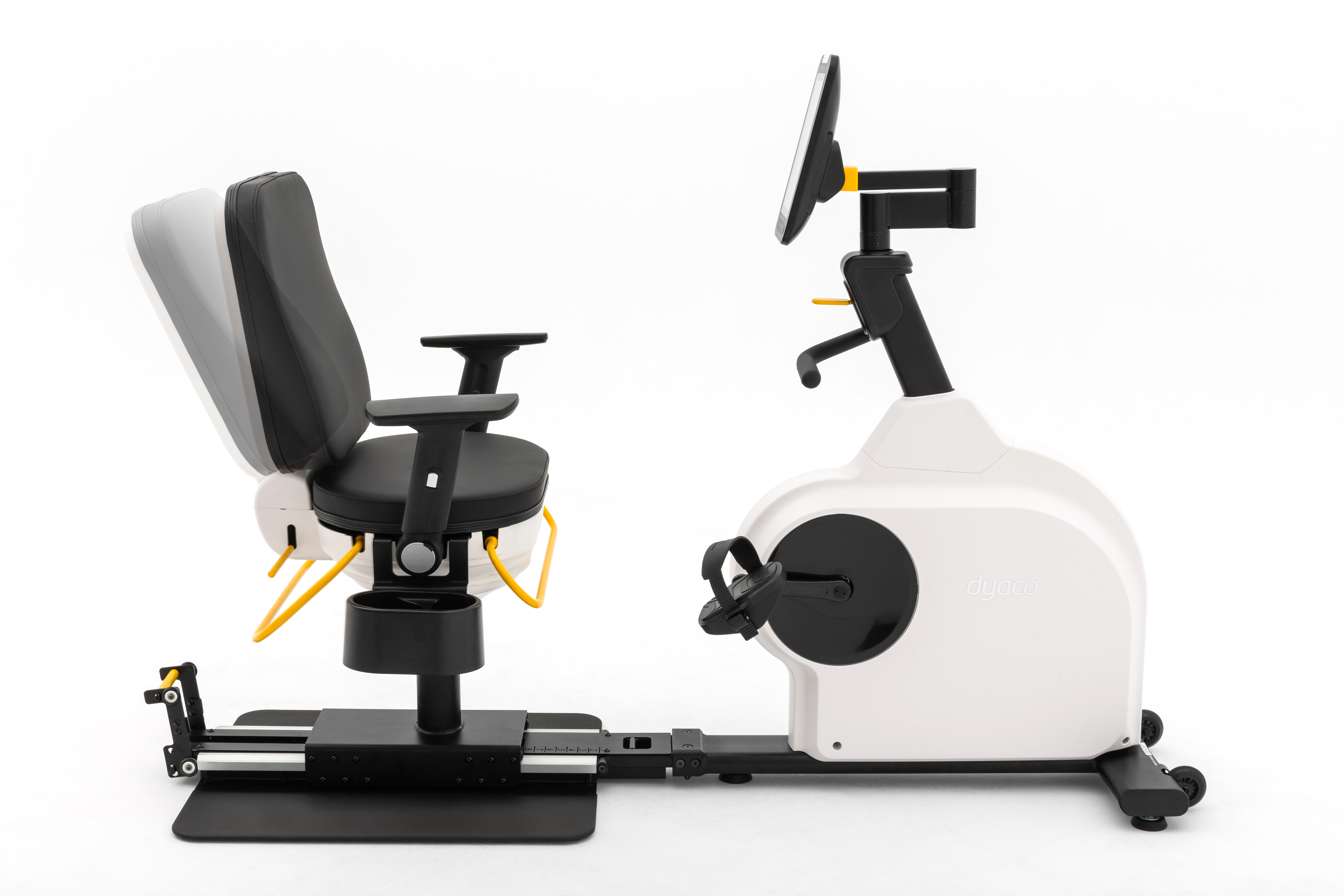 Vélo semi-allongé Dyaco Medical 8.5R ReCare : conçu pour la rééducation, mobilité du bas du corps, siège réglable et accès fauteuil sécurisé.