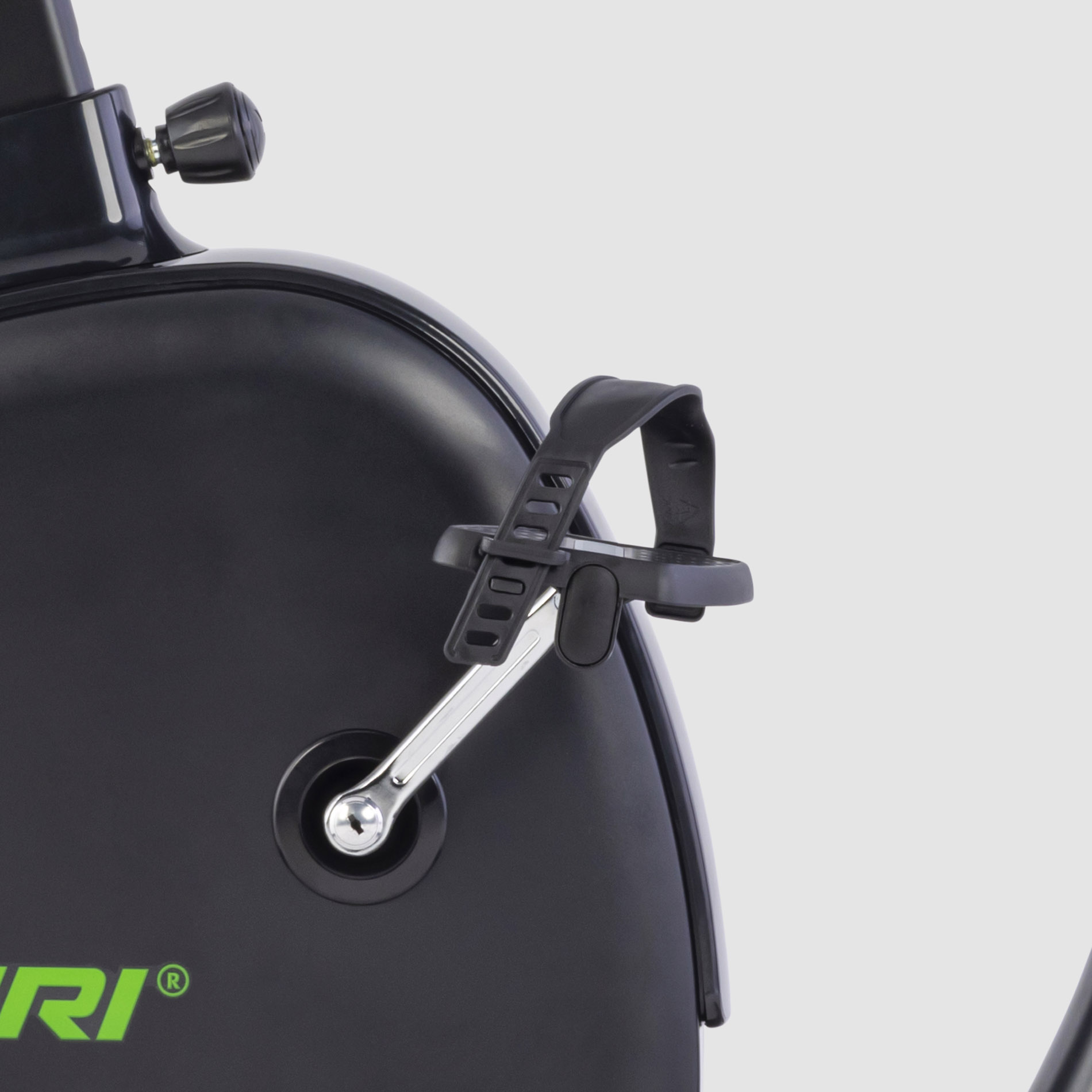 - Pédales ergonomiques : les sangles des pédales antidérapantes de forme ergonomique sont réglables, de sorte que les pieds restent stables pendant l'entrainement. De plus, les pédales ont été pensées pour que la partie plate soit constamment orientée vers le haut.